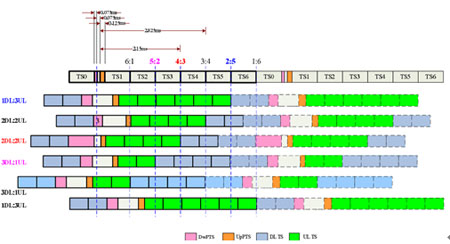 图3 TD-LTE与TD-SCDMA不同时隙比 3.小结综上所述,针对系统间和系统内的干扰,我们都可以找到相应的办法加以抑制。这些方法中有的是通过简单的频点或者空间隔离,有的是通过软频率复用等干扰协调技术进行抑制。由此可见,TD-LTE组网需要综合全面考虑与其他系统的干扰问题,这个过程贯穿在网络规划、工程建设以及网络优化中,需要我们结合理论分析和仿真,在实践中不断加以完善。 4. 参考文献【1】沈嘉 《3GPP长期演进(LTE)技术原理与系统设计》 人民邮电出版社 【2】3GPP TS 36.211 v8.8.0. E-UTRA Physical Channels and Modulation (Release 8). 2009 【3】3GPP TS 36.104 v8.9.0 Evolved Universal Terrestrial Radio Access (E-UTRA); Base Station (BS) radio transmission and reception 编 辑:张翀 联系电话:010-67110006-884