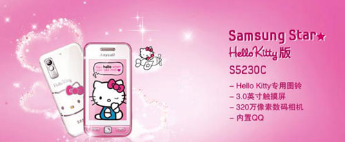 10、红粉佳人情侣手机——三星 s5230c(hello kitty) 推荐星级:☆ 售价:814元