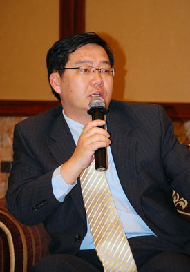 孙玉望:联芯科技是去年3月17日注册成立的,成立联芯科技也是我们大唐集团重要战略决策,其最终目的是加快推动TD-SCDMTD-SCDMA产业化和商业华,因为大唐在TD发展过程中起到重要的作用,把TD-SCDMA终端业务相关的资源整合起来,成立一个全新的公司,我们集团从支持力度上面比以往更大了,所以更加有利于推动整个TD-SCDMA产业的发展。联芯科技成立以后,一个是获得了大唐集团全方位的支持,从资金、人才、包括一些创新的激励上面,得到大唐集团母公司的全力支持,联芯科技从成立哪天起,也获得了政府、各级领导的殷切关怀和大力的帮助,联芯科技成立以后发展非常顺利,去年我们服务了奥运会,这里包括联芯科技自己研发的HSUPA数据卡,包括客户,比如说中兴、宇龙他们的手机成功服务于北京奥运会。
