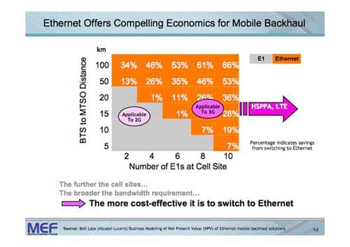 借助于CDMA1xEV-DO和HSDPA服务,一些移动运营商将专线或微波连接的数量成倍部署,保证高品质的业务传输。到2006年为止,许多实施案例的年度回程开销上涨了15%-25%。2006年HeavyReading公司发布的报告“移动运营商的回程战略”显示,基于其部署的HSDPA/EV-DO网络,运营商大都在每个蜂窝基站计划约4条T1/E1回程链路,而未来需部署多达10条类似链路才能满足用户需求。他们得出的结论是:如果回程成本得不到限制,那么蜂窝运营商的运营边际成本情况将在不久后迅速恶化。