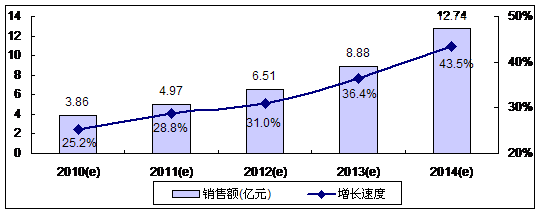 图6 2009-2014年中国GIS数据采集器市场销售额预测及增长