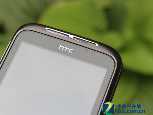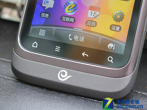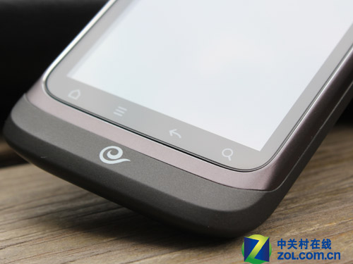 没有前置摄像头,拥有环境感应器 屏幕下方则是Android触控键的位置,四个Android电容式触控键能够很好的操作,在HTC野火和HTC渴望上的光学触控板则被取消,使用起来更自由。整个正面的材质均为塑料,不过做工精细,能够很好的防滑耐磨,手感也相当出色。