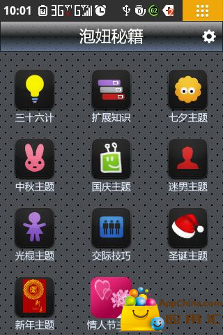 推荐理由:这是一款收集了各种恋爱技巧的软件,它绝不是一款恶趣味和没用的软件。内分17大模块,专攻泡妞指南。行多达近290条主题。无论你是宅男也好,羞涩男生,或者第一次恋爱的男生,甚至是情场高手,你都有必要去看下本软件里面的信息。恋爱是一件十分美好的东西,任何人都应当从中得到喜悦感。如果你读过本软件的信息,相信你会在情场上少吃点而亏。更让你懂得恋爱中的男女应该做什么,心理又是在想什么。 (点击下载)