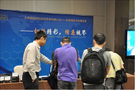 图一 凯新创达各类信号处理产品 巡展中,北京凯新创达科技发展有限公司为用户和合作伙伴介绍了自主研发的2012年最新产品和技术,提出了全面的音视频信号传输和转换解决方案。 凯新创达自主研发的N-Mix系列网络型混合矩阵和F-Mix系列光纤型混合矩阵设备,依托凯新创达的专利技术,实现了任意切换和传输多种格式音视频信号、任意定义输入输出接口数量和分辨率、缩放画面、调解亮度、画面倒置等强大的信号处理功能,为客户解决信号处理中遇到的各项问题。此外,凯新创达还为客户提供各类分配器、切换器、传输器、转换器和线缆。完整的产品线让客户得到一站式服务。