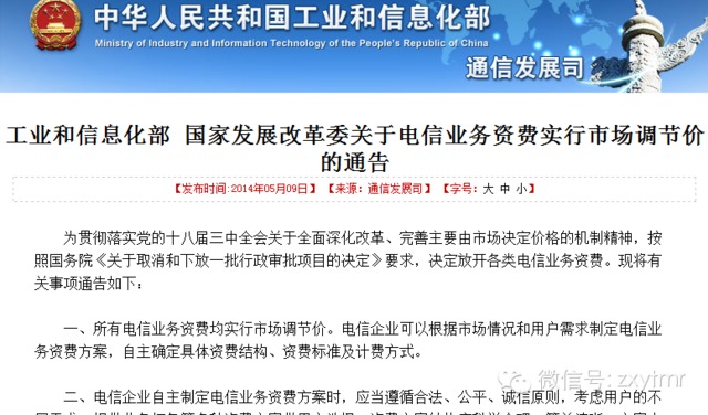 通信世界网消息(CWW) 工业和信息化部、国家发展改革委关于电信业务资费实行市场调节价的通告今日发文,虚拟运营商进入通信业也加剧通信市场化,19家虚拟运营商初步完成系统平台建设、业务对接、客服系统等基础工作,170手机号码、业务资费即将上市,《电信业务资费实行市场调节价》发布对虚拟运营商有何影响和发展机遇。我个人的理解如下,仅供参考:
