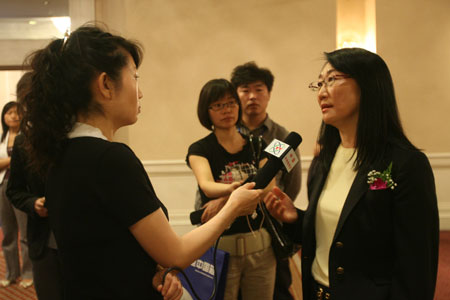 图为王雪红会后接受记者采访